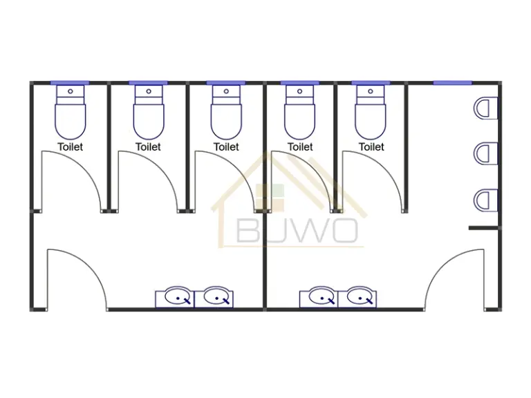 The commonly used bathroom types are Men’s bathroom, Women’s bathroom, Men’s and women’s bathroom, Shower room, Toilets, etc.