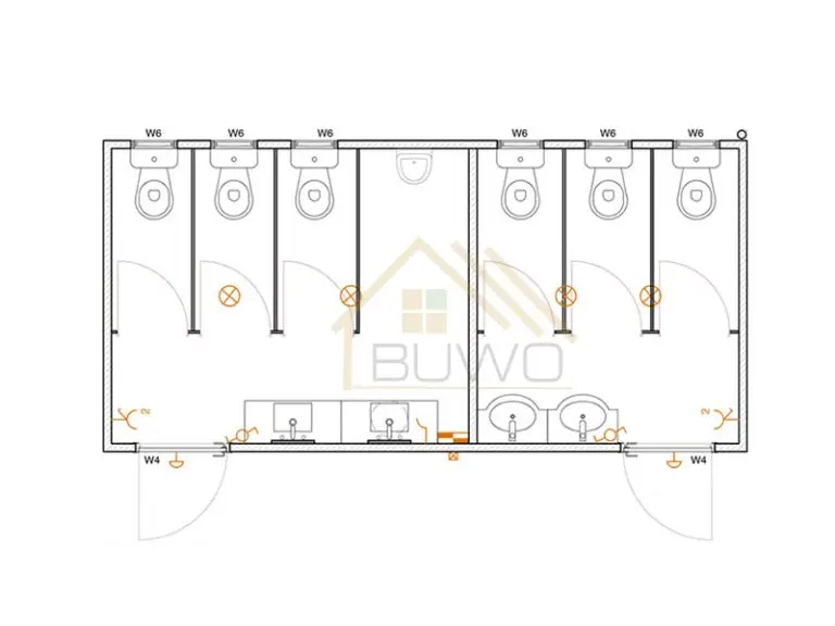 This prefabricated ablution toilet has lifting holes in four corners. It can be lifted by cranes or forklift and moved to somewhere else when it needs to change places. Thus, it can avoid the waste of resources caused by the demolition and relocation of the toilets.