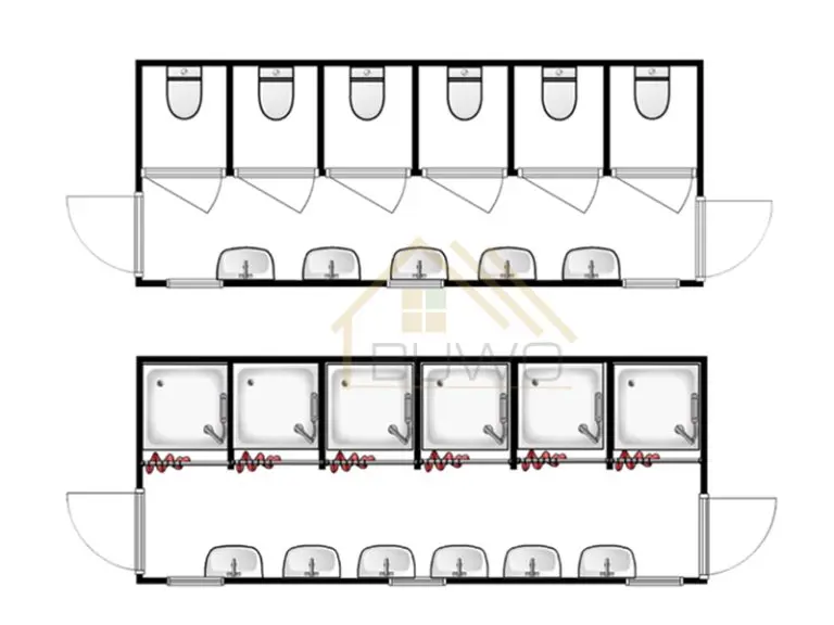 First, it is the external frame structure that includes the roof with drainage system, wall maintenance system and three-layer floor anti-rust system. That constitutes the main form of ablution.